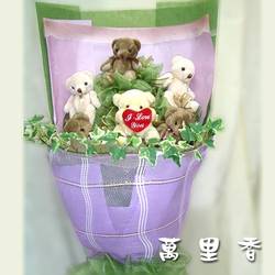 小熊5支加上1支抱心熊熊 在用人造長春藤圍繞著瞬間變的好生動
