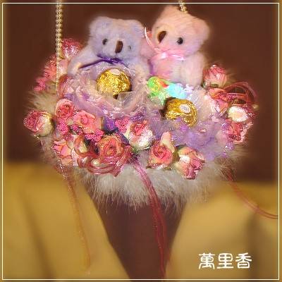也可用手提加贈一個閃動心型灯飾成一個與眾不同的花束