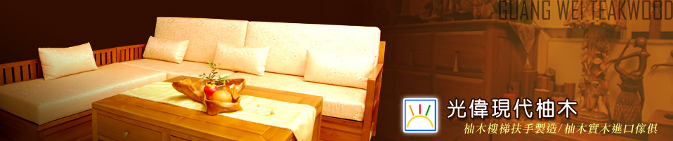 100%柚木原木傢俱,100%幸福家園」光偉柚木,位於台南市健康路上,小小的店面,卻藏著濃郁的柚木香氣,提供「柚木實木進口傢俱」、「柚木樓梯扶手製造」等服務,進入光偉的傢俱,絕對是100%柚木原木製成,百分之百實心柚木製成完全沒有貼柚木皮!歡迎喜愛鑑賞柚木傢俱的您,與我們一同沈浸在柚木香氛中。