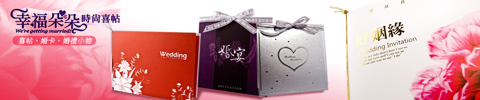 幸福朵朵 喜帖婚卡.精緻禮品我們針對顧客之不同須求,精心設計各類切合使用的婚卡/喜帖。 有鑑於網路購物的便利性,我們將電子商務的概念融入設計及印刷服務,讓顧客忙於籌措結婚事宜之餘不用出門就可以輕輕鬆鬆印製您所須要的婚卡/喜帖。