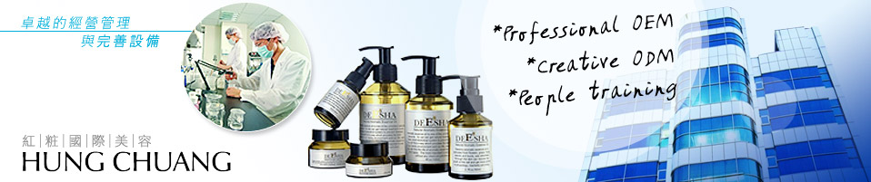 紅粧國際美容有限公司於民國八十三年正式成立累積多年化妝品專業配方經驗,並擁有獨特研發技術及生產之豐富經驗,近千坪廠內設有合乎GMP規格之工作廠地與最先進之生產設備並由工業技術研究院生技與醫藥研究所輔導成為台灣第一批少數準GMP之示範工廠。