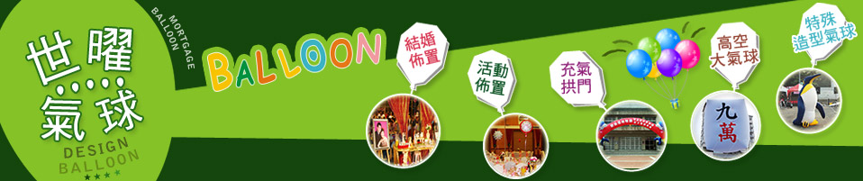 提供大台南、高雄、嘉義地區專業創意婚禮、室內外會場、婚禮、開幕、剪綵、造勢活動佈置、高空大氣球、充氣拱門、廣告氣球印製、氣球場地設計佈置、乳膠、錫箔氣球及相關器材批發