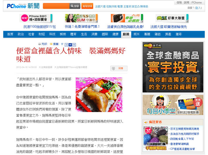 PChome新聞---便當盒裡蘊含人情味 裝滿媽媽好味道