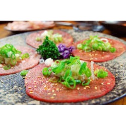 在捲起放入碗中,一口咬下,可以品嘗到不同部位牛舌的口感,