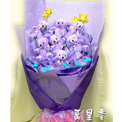 ☆花材說明-紫色小熊7支加精緻雪紗++高級包裝紙