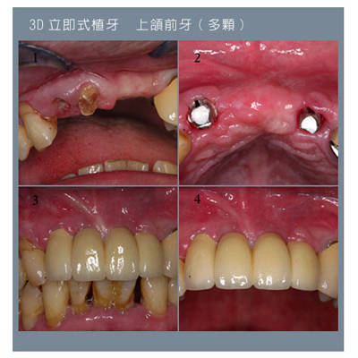 有多顆缺牙或全口無牙的患者,傳統的作法只能配戴活動假牙 , 但是活動假牙極不舒適,患者常常有活動假牙脫落移位,或是無法咀嚼食物的困擾,現在有了人工植牙,您可以選擇植入多根人工植牙,做全口固定式假牙的復形,或是植入 2-4 根人工植牙,來支撐您的活動假牙,都可以大幅的提升咬合力, 並且解決假牙不舒適及容易脫落的窘況。