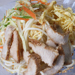 老闆娘說:「在氣溫屢屢飆高的季節,吃冰涼的涼麵的確實很清爽,即使食欲不振,也能輕易入口。」來到這裡,除了能夠品嚐美味的涼麵外,涼麵的麵條講求的就是要有QQ嫩嫩的口感, 老闆娘說:我們不會直接採用一般的油麵, 而是製作專門手工現桿的涼麵,因此店家特別選用由中高筋麵粉製成的生麵, 口感紮實又順口。