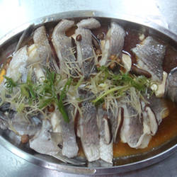 鱸魚切片,加上新鮮豆腐,香菇片...