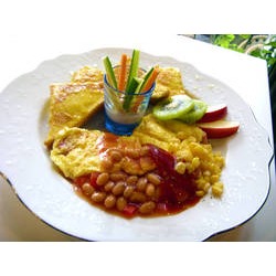 香氣十足的滑嫩法式蛋捲,有法式煎蛋吐司,為了吃起來不會太油膩,還特別加上了新鮮水果及小黃瓜~紅蘿蔔,這道法式蛋捲,目前只有棻園二店才吃的到歐~